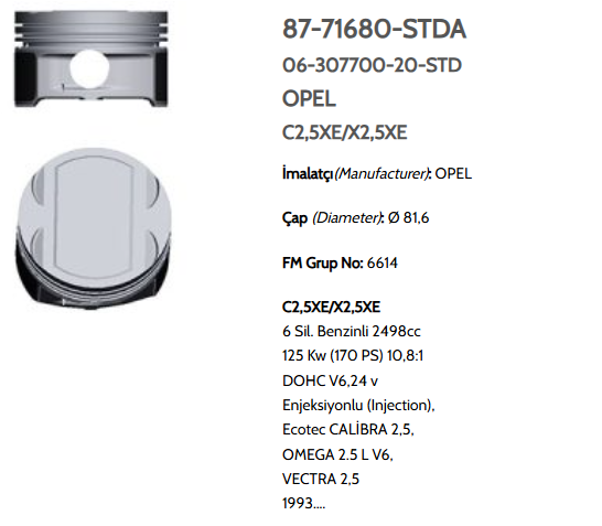 GOE-87-71680-050-0 PİSTON SEGMANLI VECTRA 2.5 C25XE-X25XE 81.6mm 050 6 CLY